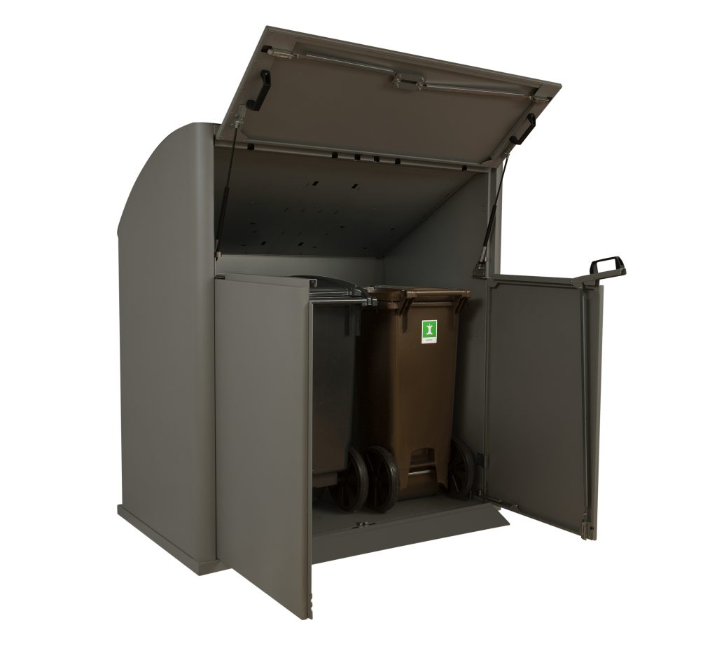 - Tilpasningsplader til anvendelse når beholderne er mindre end skabet – giver f.eks. mulighed for at anvende en 140L beholder i et 240L skab.