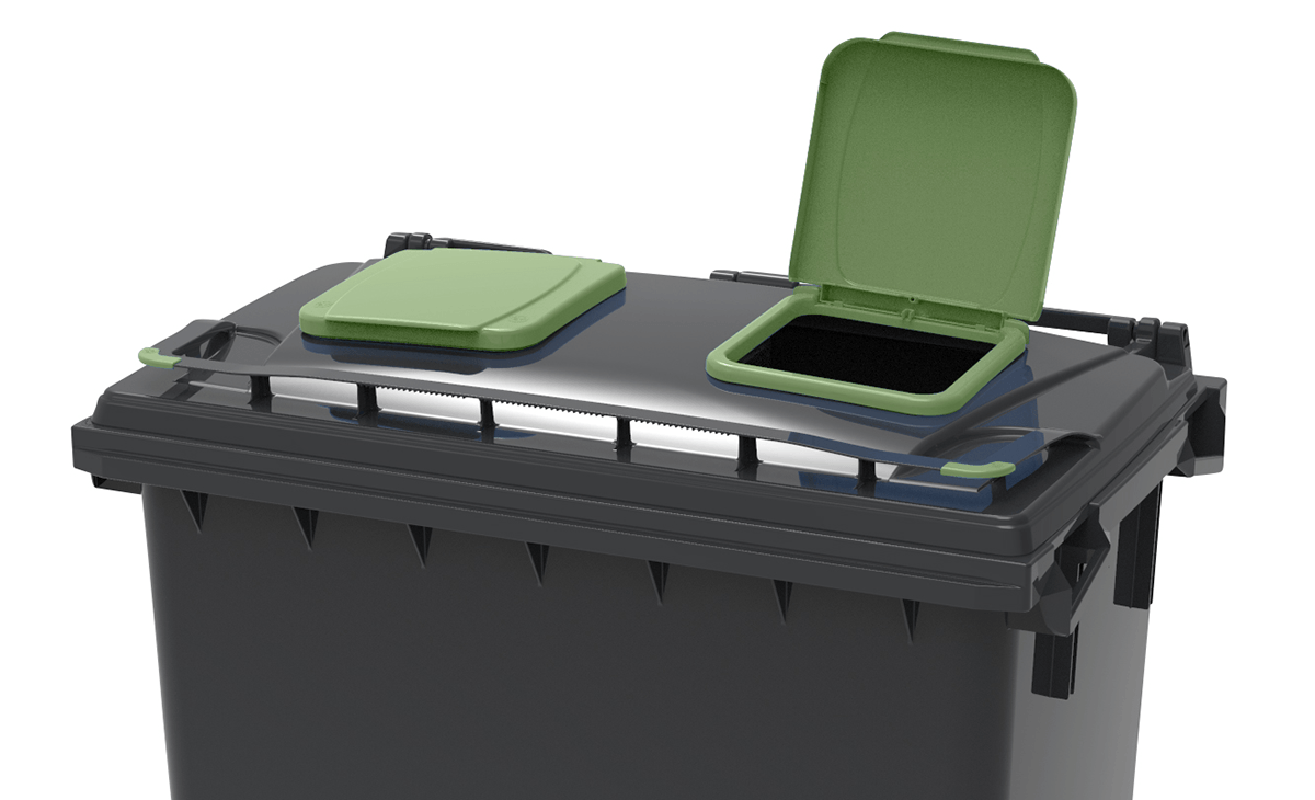 Begrænser indkastet i beholderen. Anvendes ofte til plast- eller metalaffald.