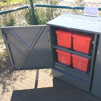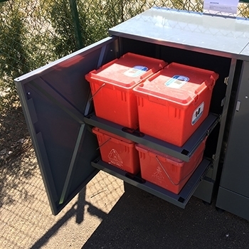 FA-skabet gør det nemmere at indsamle farligt affald fra flerfamiliehuse. Skabet er udstyret med udtrækshylder, som gør det let at placere bokse med farligt affald.
