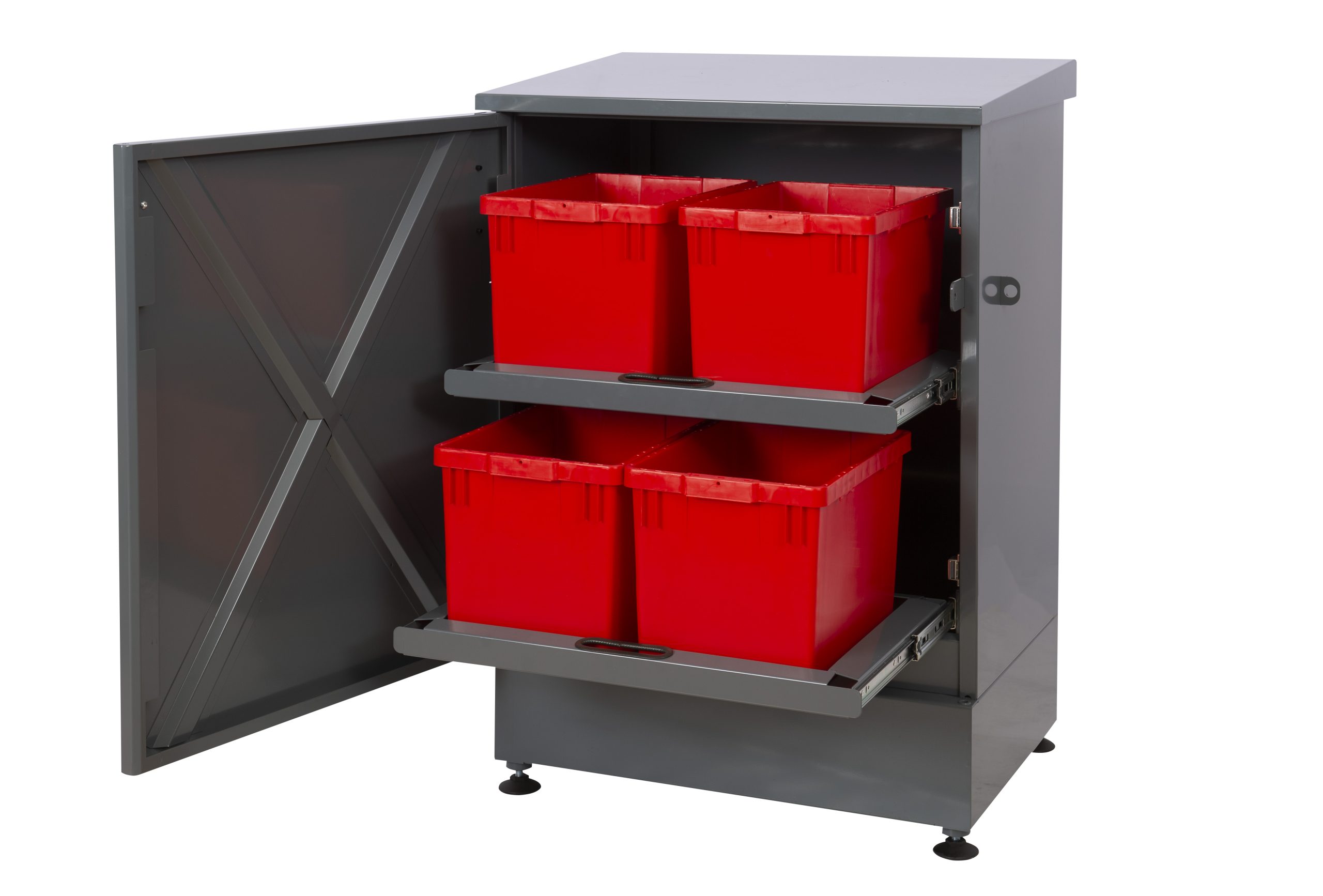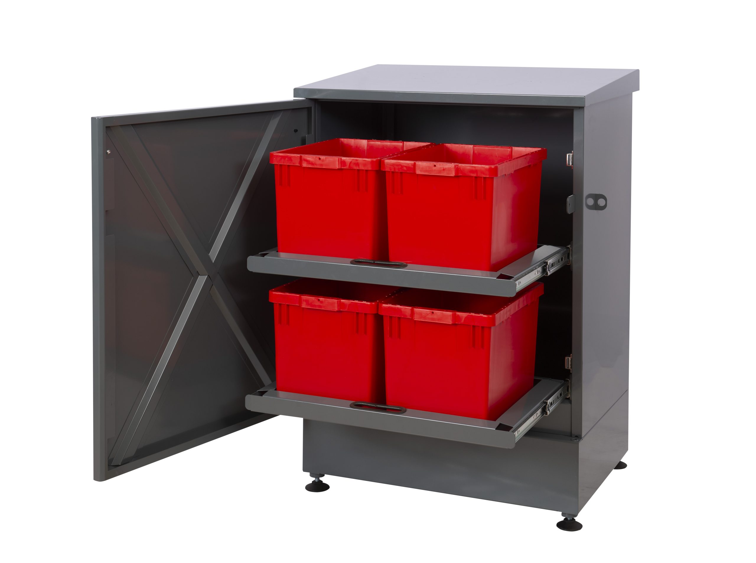 Skabet er tilpasset miljøbokse i størrelserne 21–42 liter.
