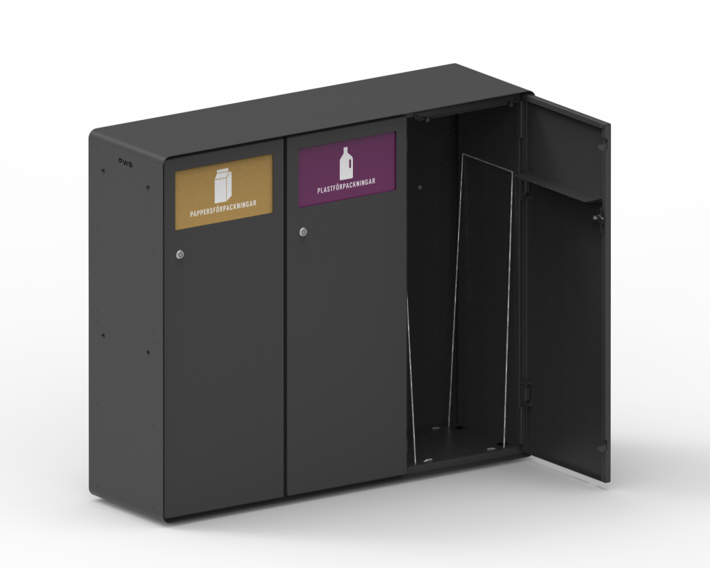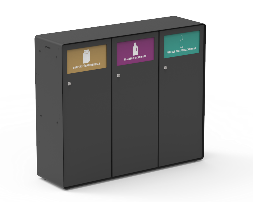 Samba Station er en bæredygtig og stilren sorteringsstation. Her med almindelig sækkeholder og 3 fraktioner.