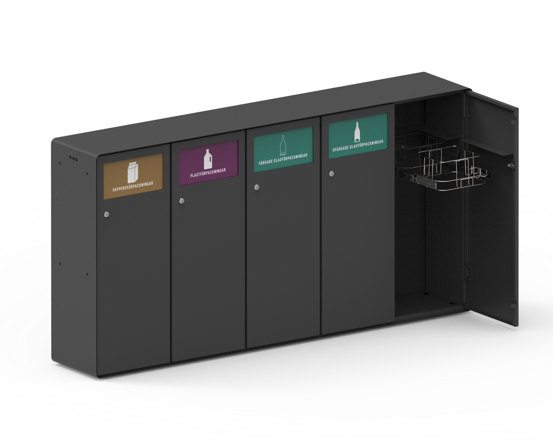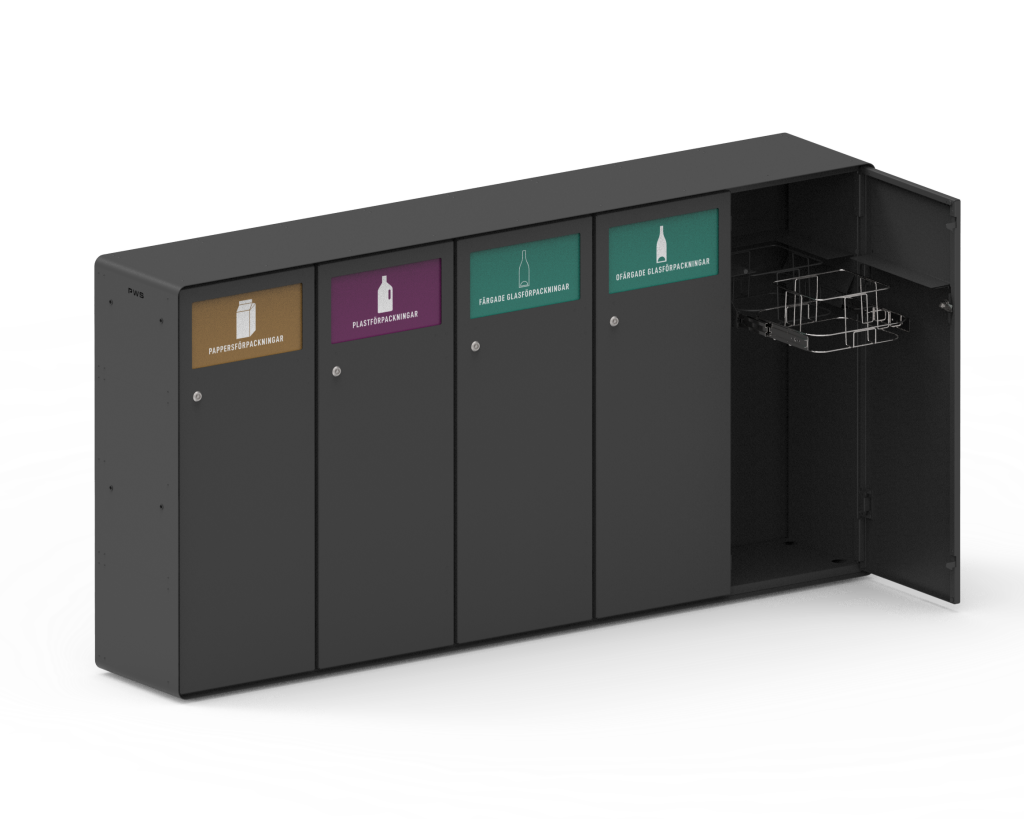 Samba Station er en bæredygtig og stilren sorteringsstation. Her med Longopac sækkeholder og 5 fraktioner.