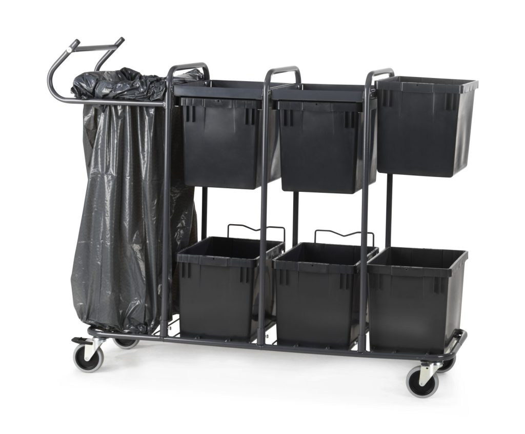 Sorteringsvogn syveren i grå inklusiv aflastningsbord